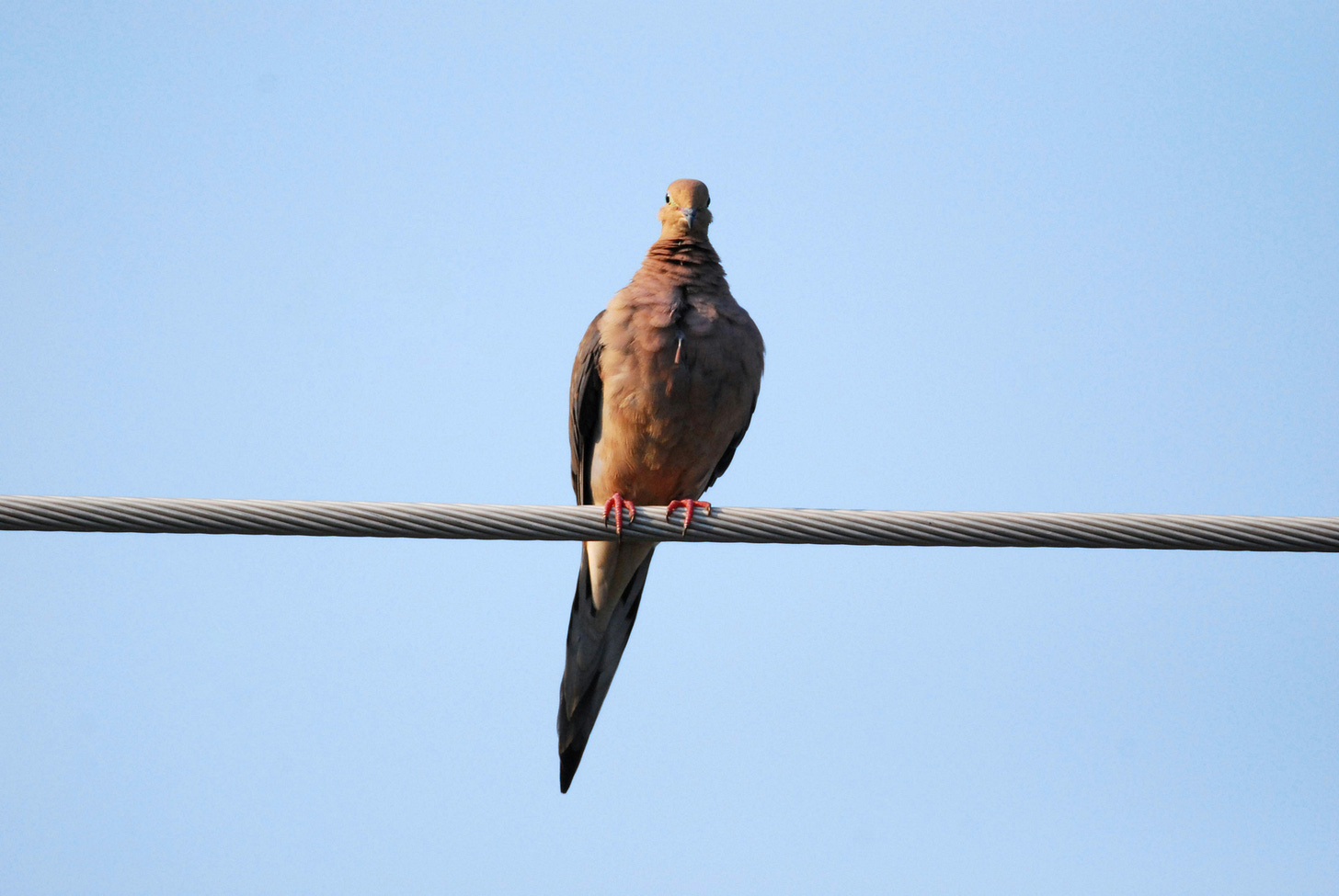 This morning, I watched a dove waddle a tightrope. The line swayed as she jerked her neck, picked at nits. It’s unkind to say, but she seemed unremarkable— duck-footed and mousy brown but somehow still suspended above me, living life on a higher plane. When she lifted off, she squealed delight like a child flown free of a chain-link swing. The air roared ovation. Why are you sitting there, waiting for grace? Waiting aground for permission to dare?
