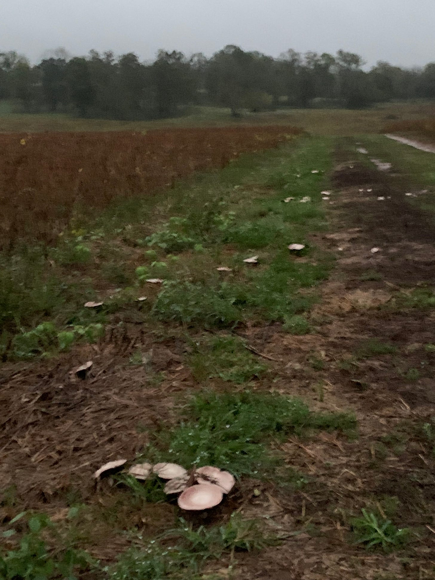 The grainy picture does not do it justice, but on a sundown walk yesterday evening, mushrooms were the brightest thing, like glowing constellations in the mud.