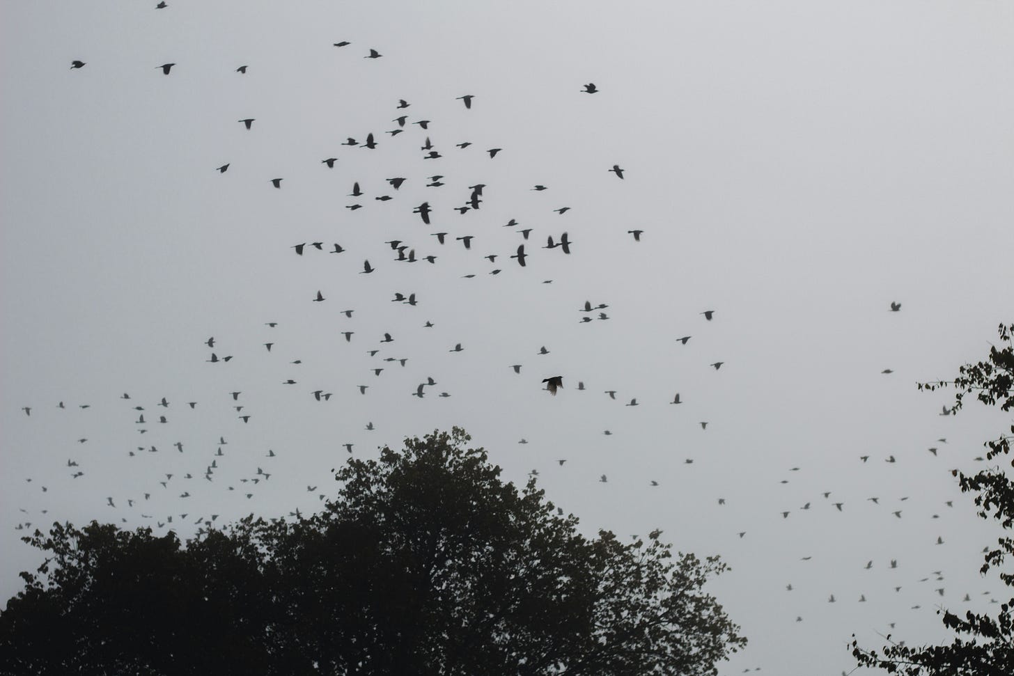 Just as the light fades and the mud thickens and the cold gray begins its seep into my bones and I begin to think that maybe I am not as keen on nature as I used to be, birds arrive in great flocks, each member a dab of paint, and suddenly the gray sky, the brown fields, my shivering body, we are all a canvas. (Yes, I have been shat upon several times.) I will never stop gasping at the birds’ murmurations with their wild and shifting shapes. Well, unless we kill off the birds. (I hate that such a notion seems not implausible.)