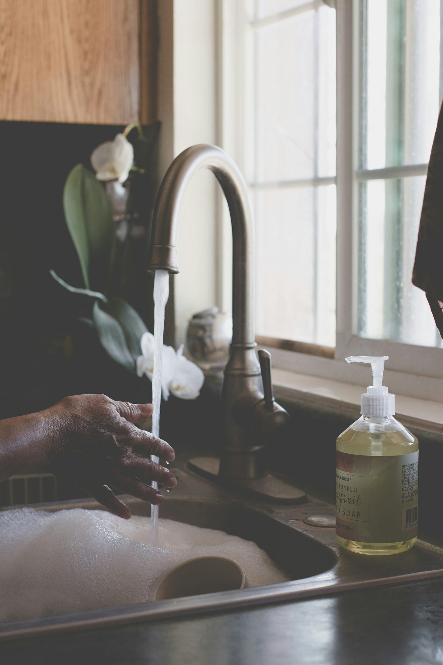 Step into that spill of sunlight puddled on the kitchen floor. Feel it on your feet, your hands, let it warm your face and paint lava inside your lids. Let water pour like a liquid miracle from stainless steel heavens into your waiting palms. Cup them together. Let them fill. Watch for bubbles. Smile when you spot them, or cry, if you’d rather. Let grief find you here— or joy. There isn’t much difference. They travel together, and they’ve been trailing you all day.